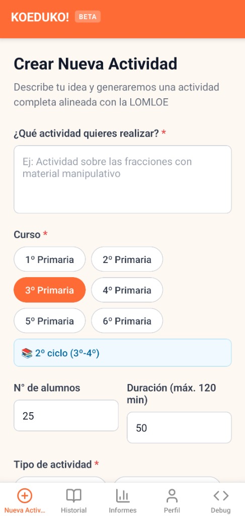 KOEDUKO genera actividades, fichas y evaluación en PDF para maestras y maestros de Educación Primaria, con estructura clara y lenguaje curricular correcto. Menos tiempo de preparación. Más tiempo para enseñar.